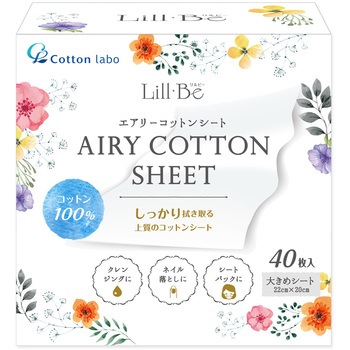 しっかり拭き取る上質のコットン100%シート。開いてパック、たたんで拭き取り、いままでのコットンにない自由自在な使い心地。ヨレにくく、やわらかな天然コットンシート。1枚22cm×20cmの超大判シート。40枚入り。