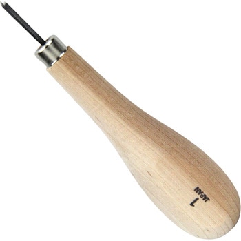 刃部分全体に焼き入れ加工がしてあり、厚い革でも曲がりません。