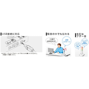 電圧許容範囲(V)AC90~264(ACアダプタ使用時)定格消費電力待機時:1.2W(AC100V時) 0.9W(DC24V時) 0.2W(DC5V時)/最大動作時:4.4W(AC100V時) 3.5W(DC24V時) 1.2W(DC5V時)使用周囲温度(℃)0℃~+40℃(氷結・結露なきこと)使用周囲湿度20%~85%RH(氷結・結露なきこと)保存温度範囲(℃)-10℃~+60℃(氷結・結露なきこと)保存湿度範囲20%~85%RH(氷結・結露なきこと)取付場所屋内取付方向正方向保護等級IP20質量(g)545(±10%)ACアダプタ含まず本体寸法(幅W×奥行D×高さH)(mm)117×100×281.5(ゴム足含まず)音圧80dB以上(本体正面1m)インターフェースUSBポート:USB2.0準拠(バスパワー対応)標準Bタイプ(メス)、シリアルポート:RS-232C準拠 D-Sub 9ピン(オス)通信方式USBポート:CDC(Communication Device Class)プロトコル、シリアルポート:調歩同期式 ボーレート 9600bps(パリティなし,ストップビット 1bit,データ長 8bit,フロー制御なし)表示灯クリアレンズ仕様 最上段>(赤・黄・緑)<最下段操作クリアスイッチ,設定用スイッチ,ブザースイッチ内容量1個