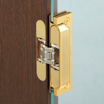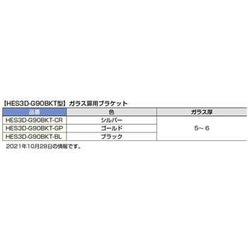 HES3D-90型用のガラス扉用ブラケットです。縦長でスタイリッシュなデザインです。シルバー、ゴールドはブラケットと同じ仕上げのねじカバーが付属しています。ブラックはヒンジ本体付属のカバーをご使用ください。