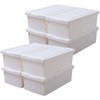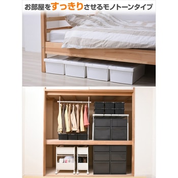すっきり中を隠せる、透けないカラーの収納ボックス。バックルでフタをしっかり固定して持ち運びラクラク。可動式の仕切り付き(色はクリア、1個につき1枚)。