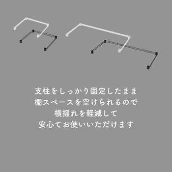 使い勝手を良くするオプションパーツシリーズ。ラック用のサポートバー。デスクやゴミ箱上ラックとしてラックを使える、コの字タイプ。ツヤのない、モノトーンタイプ。テーパースリーブ付属。