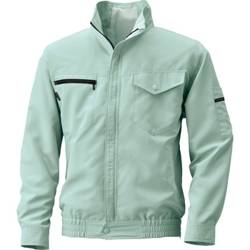 衿は風気路メッシュ、左袖ペン差し、左胸ポケットペン差し、右胸ファスナーポケット、左内側ボックスポケット、胸・両脇ポケットケーブルホール付き、ファン用リング(TPU)、袖口Wドットボタン