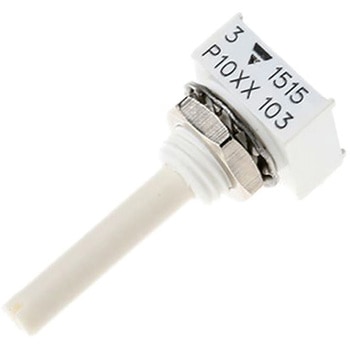 ミニチュアシングルターンポテンショメータ、0.5 W、3 mm軸、P10シリーズ. サーメットトラックポテンショメータモデルP10xxリニア、IP67適合の完全シールド プラスチックブッシュ及び軸 パネル取り付け / 基板実装 スズめっきコネクタΩ 0.5 mmでの出力 10,000回の動作保証 取り付けナット及びワッシャが付属
