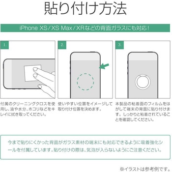 超極薄(最薄部:1.8mm)スマートフォンリング/落下防止/動画視聴に便利なスタンド機能/リング部分が360°自由に回転/iPhone8、8Plus、X、XS、XS Max等の背面ガラス素材の端末向けに専用フィルム2枚付属