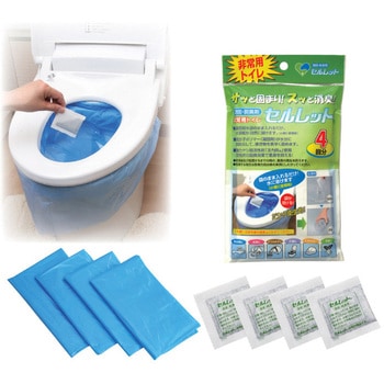 水を使わない非常用トイレです。使い方は簡単。洋式トイレ、ポータブルトイレなどに付属の汚物袋をセットし排泄後に凝固・脱臭剤をそ袋のまま入れるだけ。袋は水に溶けますので袋が自然に溶けて高分子ポリマーが水分を吸収し固化します。脱臭性に優れたヤシ殻活性炭入りだから、悪臭の発生を抑えます。固化後は水分モレの心配もありません。衛生的で簡単。災害時、緊急時など水が使えないときに大活躍。非常時の必需品。