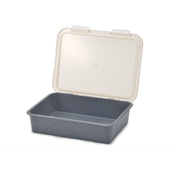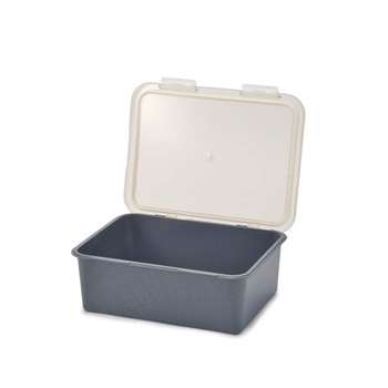 導電性ABS製の本体と、制電性ABS製のフタの組合せ。フタが透明なので、内容物の確認が行えます。シリコンパッキン付で気密性に優れています。本体とフタは横にスライドして簡単に脱着できる機構で、洗浄が容易に行えます。積み重ねて場所を取らずに保管ができます。