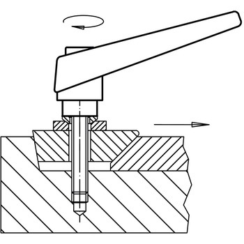 位置調整付クランピング・レバー、オネジ付、内部部品ステンレス製/黒