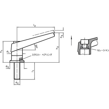 位置調整付クランピング・レバー、オネジ付、スラストベアリング付/オレンジ