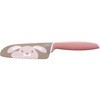 今までは丁度いいのがなく自分の使う21cmの牛刀を一緒に持って使わせてました…。ピンク+うさぎ+自分だけの包丁でよりお手伝いをしてくれるように。普通の包丁では、左手の添える場所を指示してもわからなかったのですが、「うさぎの手のところに同じように手を添えるよ」とか「顔のとこらへんで切ろうね」というようにわかりやすく伝えることができます。本当は目立たない無地の物が良かったのですが、子どもにとってとても使いやすく、他のものでなくこれを買って良かったと本当に思います。