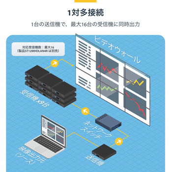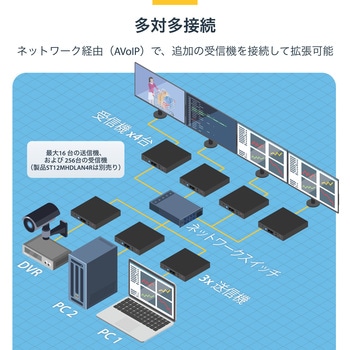 大型マルチスクリーン プレゼンテーション、ビデオウォール、ビデオ切り替え、ポイントツーポイント延長などに対応する柔軟なビデオ分配機能4K/30Hz解像度に対応、IPを介して驚きの画質を実現ビデオウォール制御が簡単にできる無料モバイルアプリ(iOS / Android)同梱の取り付け金具でプロ仕様の設置に対応ギガビットLANネットワークを使用して接続簡単な設定(2点間設定、1点-複数点の設定に対応)既存のネットワークインフラを活用してHDMIを拡張