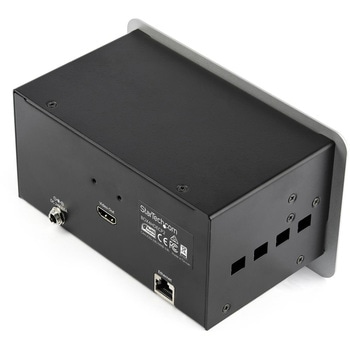 単一アクセスポイントからHDMI/VGA/DisplayPort対応ノートパソコンを会議室のHDMIディスプレイに接続スマートフォンやタブレットの充電に便利なアクセスしやすいUSB充電ポート(x3)テーブルにはめ込むタイプのAV接続ボックスで会議室や講堂に洗練されたスタイルとテクノロジーを追加。使用していない時はポートを隠せるポップアップパネル付きイーサネットパススルーで会議用テーブルに安全な有線ネットワーク機能を提供自動AV切り替え機能でノートパソコン画面を素早く切り替えTAA準拠
