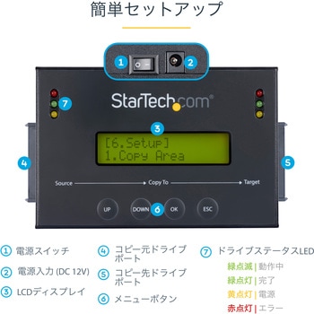 ドライブ複製モード:4つの複製モード(システムおよびファイル、すべてのパーティション、パーセンテージコピーおよびセクターバイセクター <ドライブ全体>)。6GB/分のコピー速度。SATA 3.0(6 Gbps)LCD表示。LEDインジケーター | スチール製筐体。TAA準拠