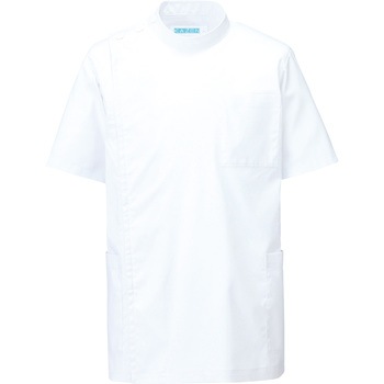 クレンゼ加工を施したメンズ医務衣・半袖。制菌、抗ウイルス、吸汗性、ストレッチ。