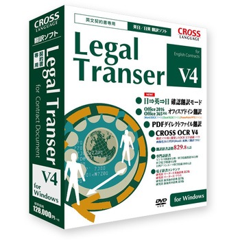 英文契約書の翻訳に特化した英日・日英翻訳ソフト。文書解析処理技術と契約書に特化してチューニングした辞書により、従来の翻訳ソフトでは得られない高品質な英文契約書の翻訳を実現。収録辞書は前バージョンより32.5万語を追加し、辞書総語数を829.8万語に増強。「翻訳エディタ」のデザイン改良と、英文作成に便利な「日⇒英⇒日 確認翻訳モード」を新搭載。認識精度も操作性も向上した「CROSS OCR V4」標準搭載。Windows10、Office2016、Office365、IE11にも対応。