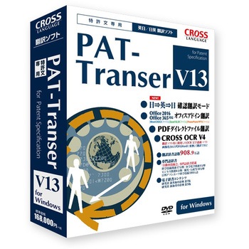 特許翻訳のエキスパートの経験とノウハウをベースに、独自開発の特許文前処理/後処理機能の搭載によって、従来の翻訳ソフトの訳出とは全く異なる高い翻訳精度を実現した特許文専用の翻訳ソフトです。収録辞書は前バージョンより83万語を追加し、辞書総語数を908.9万語に増強。「翻訳エディタ」のデザイン改良と、英文作成に便利な「日⇒英⇒日 確認翻訳モード」を新搭載。認識精度も操作性も向上した「CROSS OCR V4」標準搭載。Windows10、Office2016、Office365、IE11にも対応。