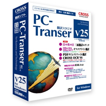 実務翻訳での利用を想定した翻訳ソフト。収録辞書は合計838.1万語(基本語辞書370万語:英日131万語・日英239万語、専門語辞書468.1万語:英日223.6万語・日英244.5万語)。画期的な翻訳作業環境を実現する「翻訳エディタ」、「翻訳メモリ」のデザイン改良。英文作成に便利な「日⇒英⇒日 三面翻訳エディタ」を搭載。文字認識ソフト「CROSS OCR V4」搭載。OS Windows10、Office2016、Office365、IE11にも対応。