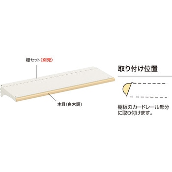 棚板のカードレール部分に取り付けます。手すり、全面ストッパーと同時使用可能。