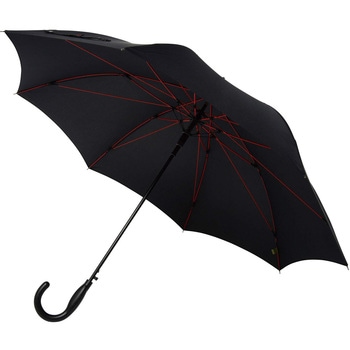 8本骨。裏返りにくい特殊構造。一般的な長傘に比べ受骨を増加した、強風や突風に強い裏返らない構造。手元と骨の赤色がスマートな強さを表現。片手で快適、ワンタッチオープン。