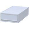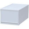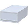 深さはS/M/Lの3種類、組み合わせてすっきり整理収納。積み重ねてもずれにくい、天板&底板の凹凸仕様。引き出しはストッパー付きで、引き出し過ぎてもズレ落ち防止。前板の端から端まである持ち手で、開閉ラクラク。