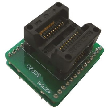 ADA-SO20-200、ユニバーサルアダプタ、SOP8 / SOP16 / SOP20 - DIP20. SOP20 - DIP20ユニバーサルアダプタは、8 / 16 / 18 / 20ピンSOPデバイスを20ピンDIPデバイスに接続 幅: 200 mil又は210 mil SOPデバイスに適合し、DIPソケットに接続 他メーカーの同等アダプタ: WL-SOP20-U1、PA20SO20D-EO-210、SA605A / SA605B