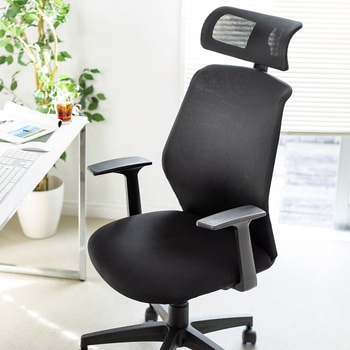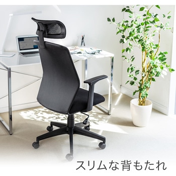 背もたれに涼しいメッシュ素材を使用し、蒸れにくく快適。座面はクッション製も高く、すわり心地も抜群です。腕の疲れを低減する肘付き。座面下のレバー一本で座面の高さが調節できます。背座ロッキング付き。可動式ヘッドレスト。