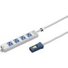 コンセント数は2コ口、4コ口、6コ口、8コ口からお選びいただけます。通電状態をひと目で確認できます。電源表示灯を仕様変更し、従来品に比べ明るく視認性を向上させました。フロアパネルからのコードの引出しを制限するストッパー付。ケーブルに張力がかからない位置に調整可能です。プラグを差し込むと自動的にロックがかかります。仮固定も簡単、 マグネット部分は取り外し可能です。