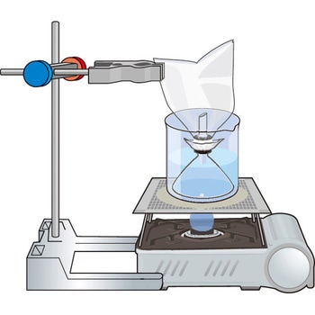 沸騰させた水から出た水蒸気を袋で採取する実験に使います。