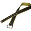 PP樹脂加工ベルト・発泡ポリエチレン・840Dナイロン地(裏ビニール加工)にる3層構造で、今までにない、しなやかでソフトな感触に仕上げました。柔らかクッション付きで「腰の痛み、疲れ」を和らげます。クッションがベルトの締付けを和らげ、従来品に有りがちだったナロンベルトの角部のくい込みによる「痛み」を軽減します。クッション付きのため、体への着用感がソフトで、また、作業ズボンのベルト通しにダメージを与えません。