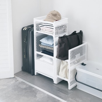 積み重ねることで下のスペースも有効利用できるスッキリ整頓ラック。