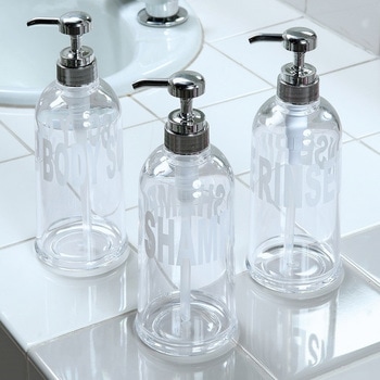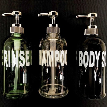 大きな文字、大容量サイズ(約500mL)、詰まりにくい太めのパイプと機能盛りだくさん。デザインだけでなくとことん使いやすさにこだわった詰め替えボトルです。ボディーソープ用・シャンプー用・リンス用とアルファベット印字が違いますので、よく確かめてからご購入ください。クリア・ダークグレー・グリーンの3色から選んでいただけます。