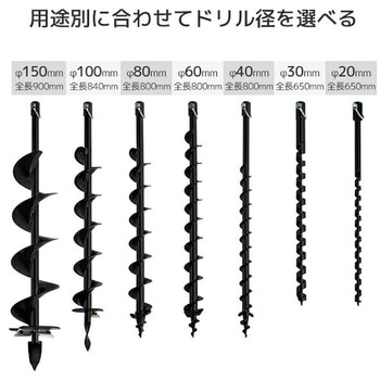 ビニールハウスの柱、杭打ちの埋設用、穴掘りや作物等の穴肥に最適な掘削機。お得なドリル1本付属セット。