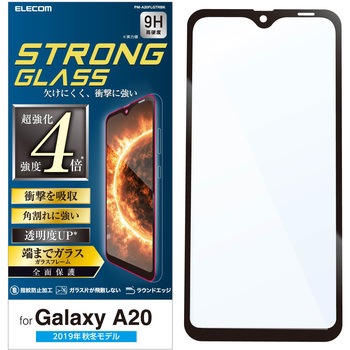 最強加工 強度4倍以上を実現。超強靱加工により、角割れに強いエッジ部分と最強クラスの耐衝撃性を実現した、3D構造ガラスによる全面保護タイプのGalaxy A20用ガラスフィルム。