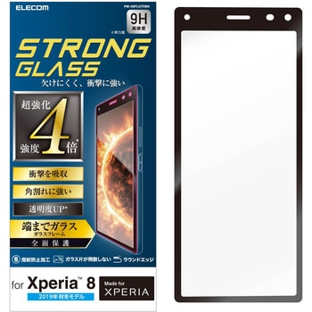 最強加工 強度4倍以上を実現。超強靱加工により、角割れに強いエッジ部分と最強クラスの耐衝撃性を実現した、3D構造ガラスによる全面保護タイプのXperia 8用ガラスフィルムです。