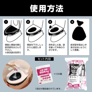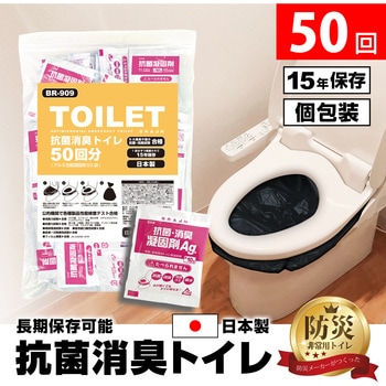 水が使えない状況でも排泄袋(別売)をかぶせるだけで用を足すことができます。使用後に凝固剤をふりかけるだけ。ジェル状に固まりゴミとして廃棄可能です。凝固剤は1回分ずつアルミパックで密封されているので、開封しない限りそれぞれ15年の保存が可能!抗菌作用があり、感染症の原因となる大腸菌や黄色ブドウ球菌の繁殖を抑制。公的機関で各種性能検査テスト済み。抗菌力、消臭力、焼却残渣、急性経口毒性、皮膚一次刺激性のテストを実施済み。