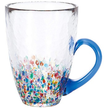 青森県伝統工芸品に認定のブランド。「四季を感じるハンドメイドガラス」を開発コンセプトに、津軽の職人たちの巧みな技術と技法によって、手づくりならではの柔らかな形にひとつひとつ仕上げています。少し大きめの取っ手付きで、持ちやすい形状です。取っ手の色で、誰のグラスか一目で判ります。