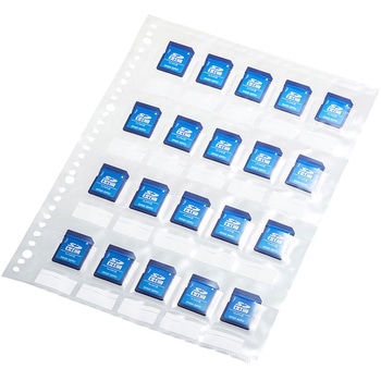 SDカードを1シートに20枚収納できるA4サイズのファイルシートです。持続的に帯電を防止する機能を持った帯電防止仕様のシートで、SDカードを静電気から守ります。シートに直接SDカードのタイトルやデータ内容がメモ書きできます。市販のバインダーに対応したA4サイズ30穴仕様です。