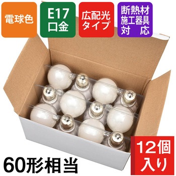 小形LED電球 60形相当の明るさ断熱材施工器具(SB・SGI・SG形表示器具)対応配光角195度の広配光タイプ電球色口金:E175年保証12個入り