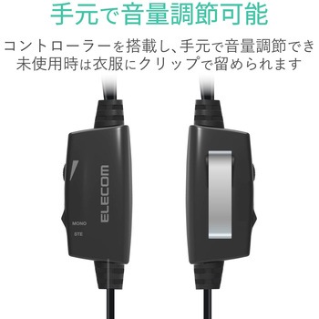 ・ボリュームコントローラーに、胸ポケットや衣服に取り付けるのに便利なクリップが付いています。