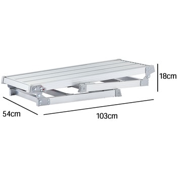 天板は幅広でいいと思います。ロックも脚部のアジャスターもしっかりしてます。難点は脚部を格納して立てかけているとき、脚部の回転部が緩いので角度をつけないと脚部が手前に倒れます。もう少し回転部がきつければなと思います。