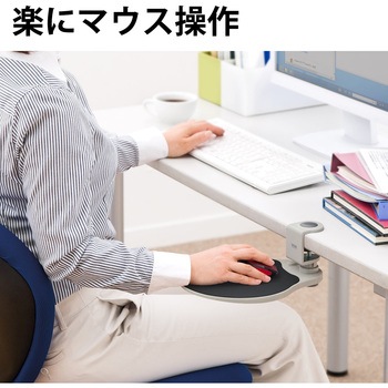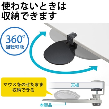 天板にマウステーブルを取付けることで、机上スペースを広く利用できます。マウスパッド部には硬質のPPを使用しているので、滑らかなマウス操作が可能です。レーザー式、光学式、ブルーLED式、IRセンサー式各種マウスに対応しています。回転式で、未使用時には天板裏に収納することが可能です。肘をほぼ直角にしてマウスの操作ができるので姿勢が崩れくくなります。右利きでも左利きでもご利用頂けます。