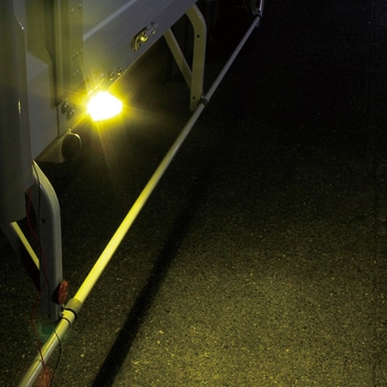 従来のマーカーランプの用途に加え、ライン光によって他車のサイドミラーに映りやすく視認性が向上。ダウンライトは地面を照らし、車幅確認をしやすくする。