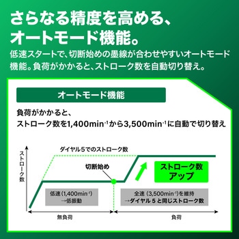 ストローク数を一定に保つ定速度制御で安定したキレイな切断が可能です。