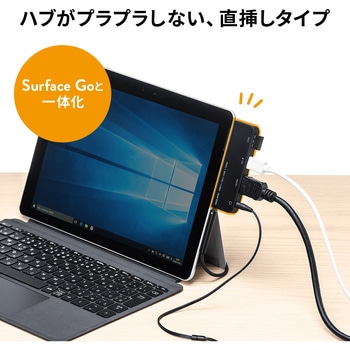 USB-Type-Cでの「USB Power Delivery(USB PD)」に対応しており、接続したSurface Goへの給電も本製品経由で可能となります。 ※別途ACアダプタが必要です。 ※PD充電する場合は35W以上のACアダプタをご使用ください。