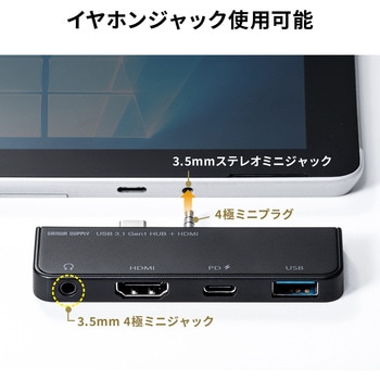 電源バスパワーコネクタ形状HDMIタイプA(19pin)メス×1プラグ3.5mm 4極ミニプラグ×1供給電流(mA)最大860(全ポート合計)【映像出力】通信速度5Gbps, 480Mbps, 12Mbps, 1.5Mbps対応解像度最大4K 30Hz【オーディオ】インターフェイス-アップストリームUSB 3.1 Gen1、USB 3.0 (USB 2.0、USB 1.1上位互換)インターフェイス-ダウンストリームUSB 3.1 Gen1、USB 3.0 (USB 2.0、USB 1.1上位互換)コネクタ形状-アップストリームType-C オス×1コネクタ形状-ダウンストリームUSB 3.1 Gen1(USB 3.0) Type-A メス×1、Type-C メス×1内容量1個