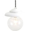 大きめのカサと電球のような形をしたガラスの絶妙なバランスがレトロな雰囲気を演出するスモールサイズのペンダントライト。泡入りガラスが映し出す灯りと影は幻想的な雰囲気を演出します。