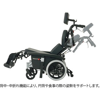 大柄な方から小柄な方まで幅広く対応します。ラチェット式サイドサポートで左右へのからだの傾きを改善します。背中・中折れ機能で円背や食事の際の姿勢をサポートします。