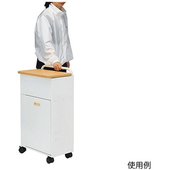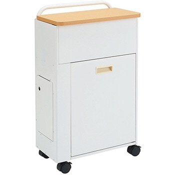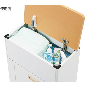 約7人分の用品を搭載できるので、夜間の連続おむつ交換なども楽に行えます。キャスター・持ち手付きで移動がスムーズで静かです。上段におむつや用品を収納でき、下段はごみを入れられるスペースになっています。サイドのポケットは洗浄ボトル(シャワーボトル)等を入れることができます。動かさない時は、トイレなどに置いて物入れやゴミ箱として使用可能です。