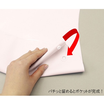 エプロン部のスナップを留めるとポケットになり、食べこぼしをキャッチできます。オール樹脂製のため、カビやにおいが付きにくいです。縁取りがなくフラットな仕様のため、汚れが落ちやすくカビにくいです。使用後は中性洗剤で手洗いが可能です。カビにくく、におわない
