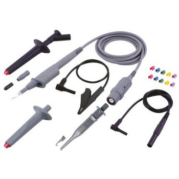 Isoprobe III 10:1 300 MHzテストプローブセット、CAT III. Isoprobe III 10:1 300 MHzテストプローブセットは、Isoprobe III 10:1 300 MHzテストリード、及び一次リードに対応する各種アクセサリ(絶縁スリーブ、フッククリップ、スチールジョー付きテストクリップなど)で構成されています。 Isoprobeテストリードは、非常にフレキシブルなPVC絶縁同軸リード(補正ユニット搭載BNCプラグ付)、及びプローブの持ち手部分のリファレンスリード接続用2 mm安全ソケットに基づく構成になっており、テスト機器とテスト対象項目間の長い距離を中継するのに最適です。. 定格電圧: 1000 V、CAT III (600 V、CAT IV) 分周比: 10:1 入力静電容量: 13.5 pF 入力抵抗: 10 MΩ 周波数範囲: 0-300 MHz 長さ: 120 cm